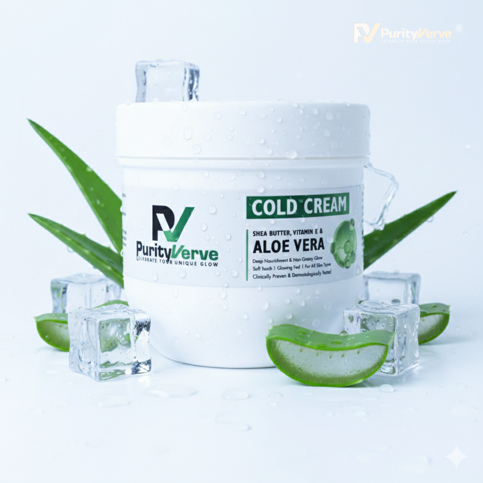 PurityVerv Cold Cream with Shea Butter & Aloe Vera – Vitamin E provides deep nourishment, locks in moisture, and protects skin from dryness, leaving it soft, smooth, and naturally glowing every day.