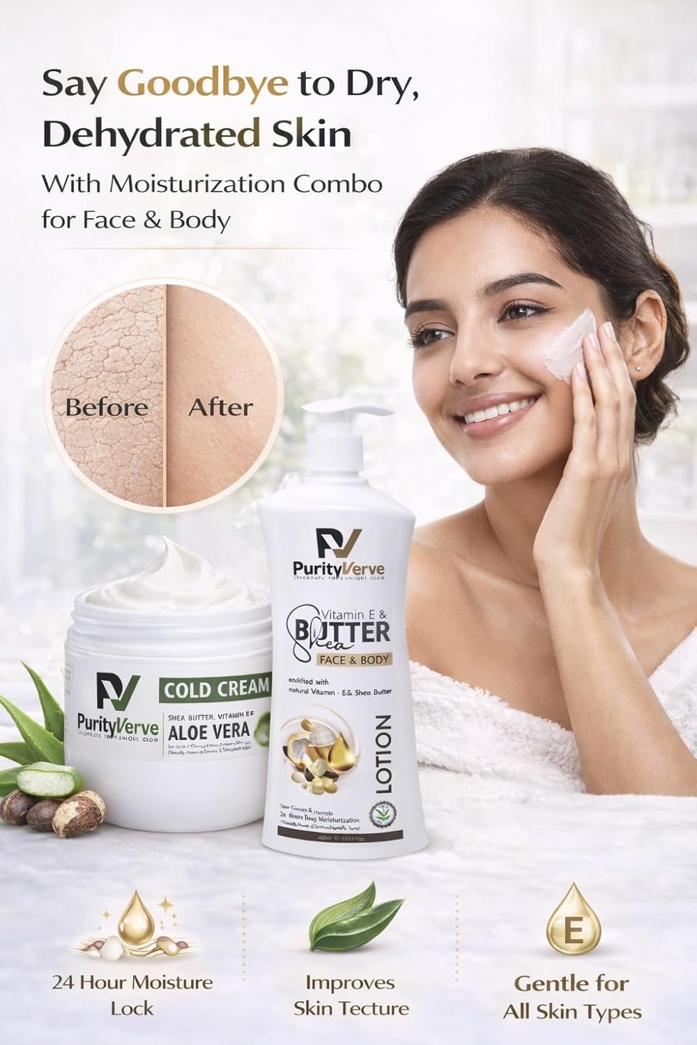 PurityVerve Vitamin-E & Shea Butter Face & Body Lotion is a daily moisturizing formula designed to hydrate, soften, and nourish the skin. Enriched with natural Vitamin E and Shea Butter, it helps maintain moisture balance while keeping skin smooth and comfortable throughout the day.